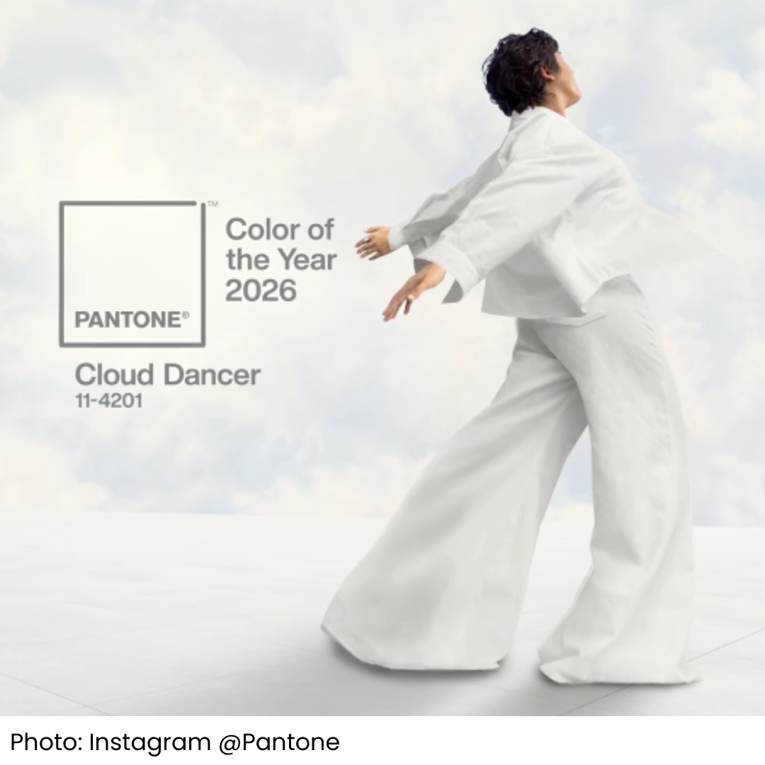 Cloud Dancer (PANTONE 11-4201) is the first shade of white ever selected as Pantone’s Color of the Year. Soft, ethereal, and quietly powerful, this off-white hue reflects serenity, balance, and a fresh start in an increasingly noisy world. And yes, it’s already shaping fashion trends for 2026.
